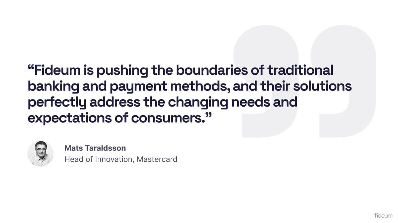 Mastercard Europe: Fideum’s credibility and potential for growth were enhanced through its recent partnership with Mastercard. The company won the Mastercard Lighthouse FINITIV Program Grand Finale at Slush 2023, opening doors to collaborating with other financial companies. The award enabled Fideum to partner with leading banks such as SEB and Danske Bank.