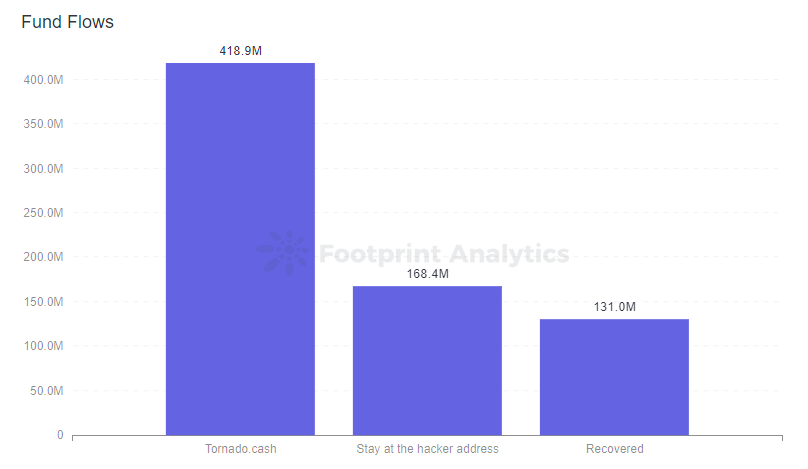 - Approximately $418.89 million in stolen funds were transferred to Tornado.cash by hackers, representing 58.3% of the total amount stolen during the quarter.