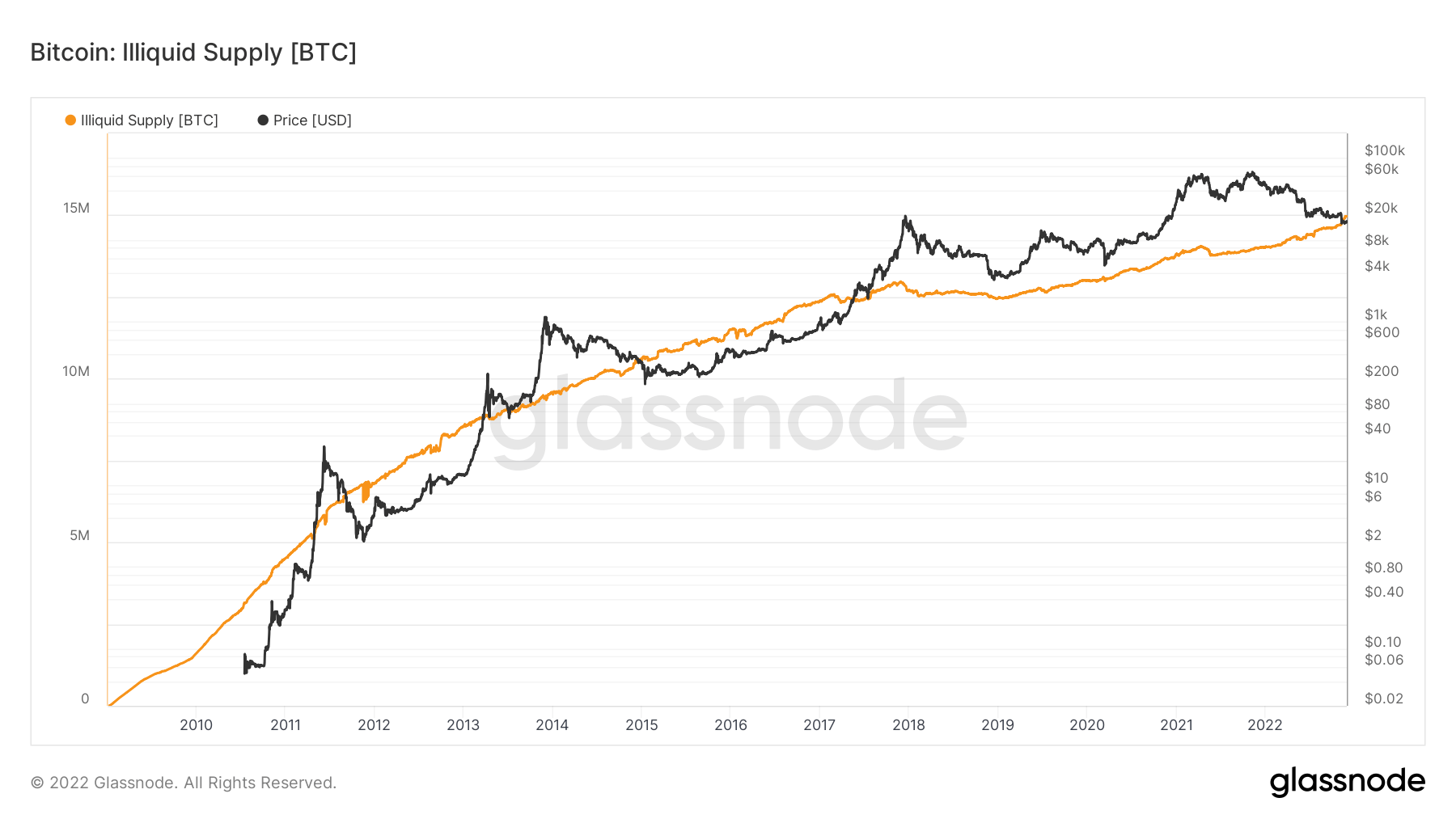 Illiquid supply is a vital crypto data set as it implies only a few weak hands (a quarter of all BTC supply), can sell their holdings and exert bearish pressures.