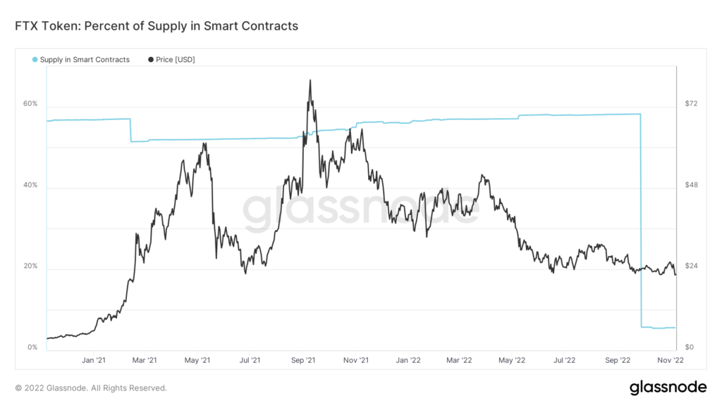 Before October, 60% of the FTT supply was held in smart contracts, but this has fallen to roughly 5% as the market got spooked by the onslaught of revelations about FTX. However, FTT open interest and 24-hour volume spiked to the highest levels this year during the same period.