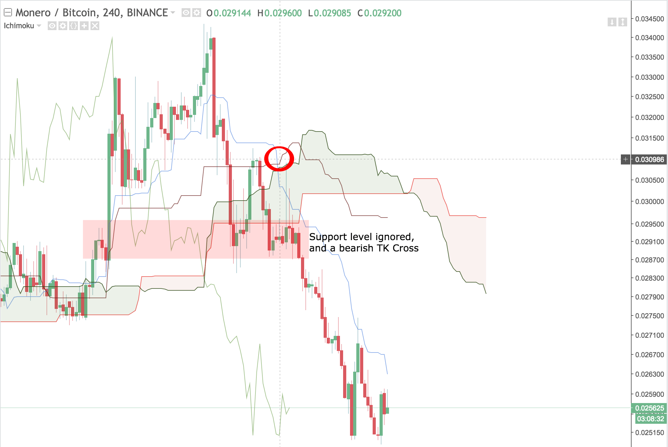 Ichimoku clouds allow support and resistance levels to be seen more easily, while also showing key information like momentum and trends. The main indicators to look for on a trade are TK crosses, Kumo breaks and Kumo Twists.