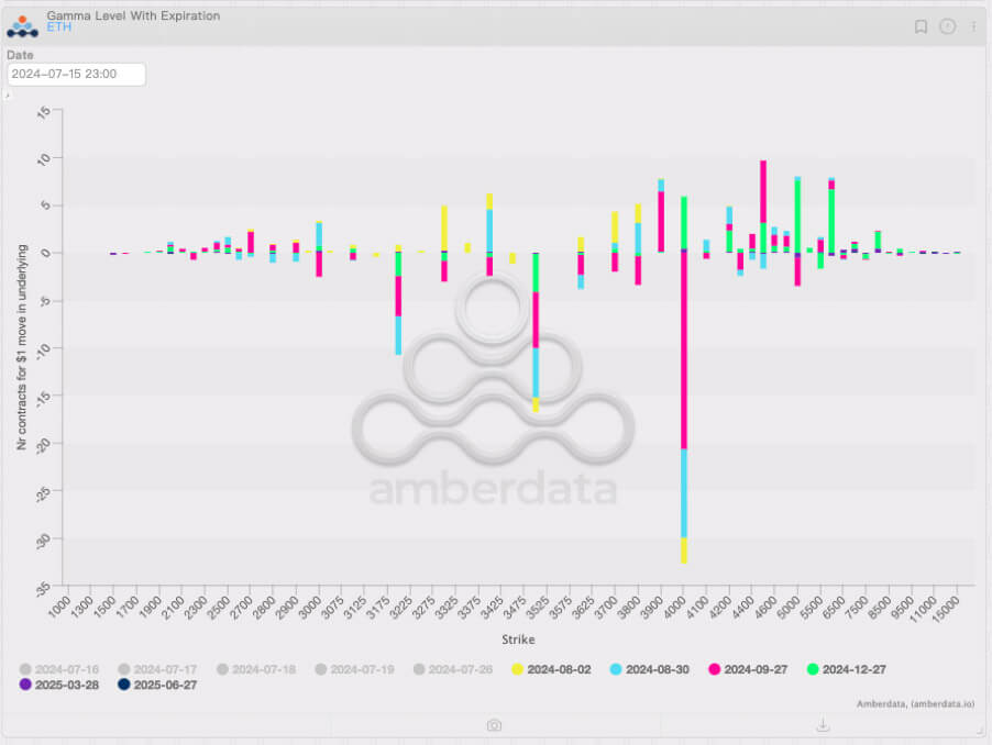For ETH, we can expect it to perform better than BTC. On the one hand, ETH spot ETF may be officially listed for trading next week; during the Asset Allocation period, ETH may experience a similar rise to BTC in Quarter 1, which makes investors have higher expectations for ETH's performance. From the gamma distribution perspective, ETH's resistance on the upward path may be significantly reduced after the Jul options' expiration, which means its price breakthrough will be more certain.