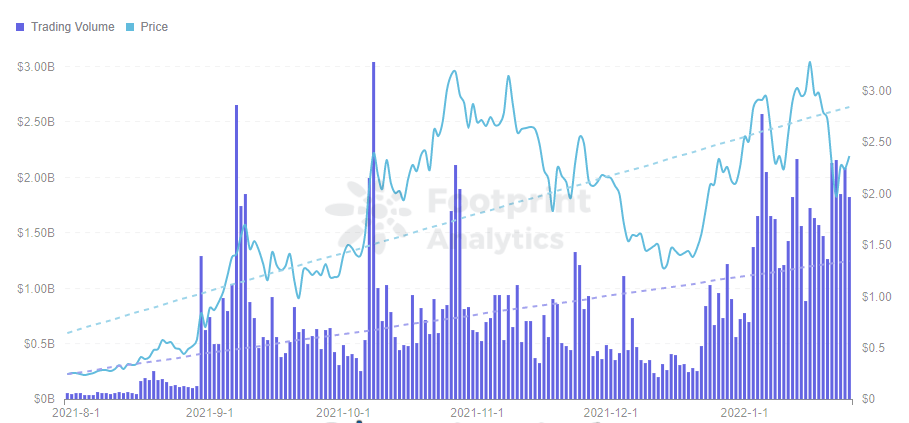 Fantom's token was issued at $0.02, with a high price of $3.28 and an ROI of 16,300%. The current price and market cap is not as high as other public chains’ tokens, e.g. Terra (LUNA) and Solana (SOL).