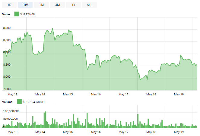 Bitcoin prices fell nearly 10% over the course of the conference week, dropping below $8,000 on the final day of the event until hitting a low of $7,931. Fundstrat digital currency analyst Alex Kern highlighted the changing nature of Consensus as a catalyst for the price drop: