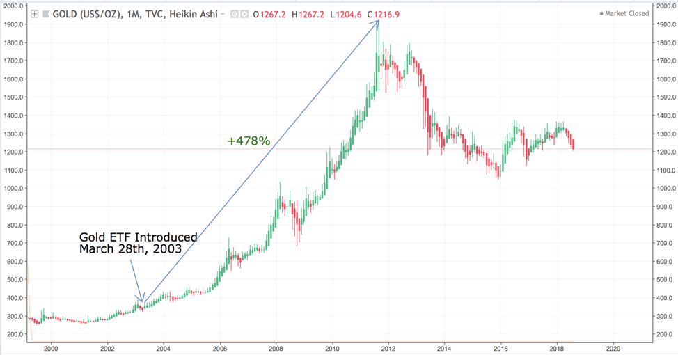 After the ETF for gold was introduced in 2003, prices exploded from $331.60 per ounce to a high of $1,917.90, a 478% increase! Much of the smart money in the cryptocurrency investing space believe a Bitcoin ETF will have a similar outcome on the market.