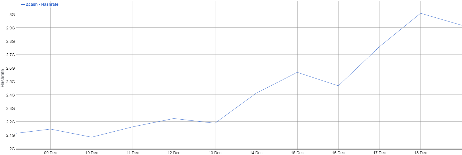 According to information from BitInfoCharts, from Dec. 10th to 18th, Zcash difficulty has jumped from 2.1GH/s to 3 GH/s, a 42 percent increase. Mining difficulty has adjusted accordingly, causing some concern among Equihash miners.
