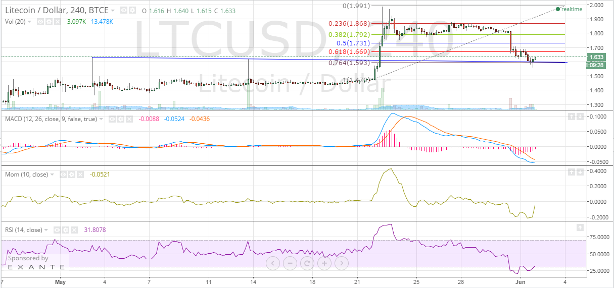 Litecoin is currently trading down 2.2% at $1.633.
