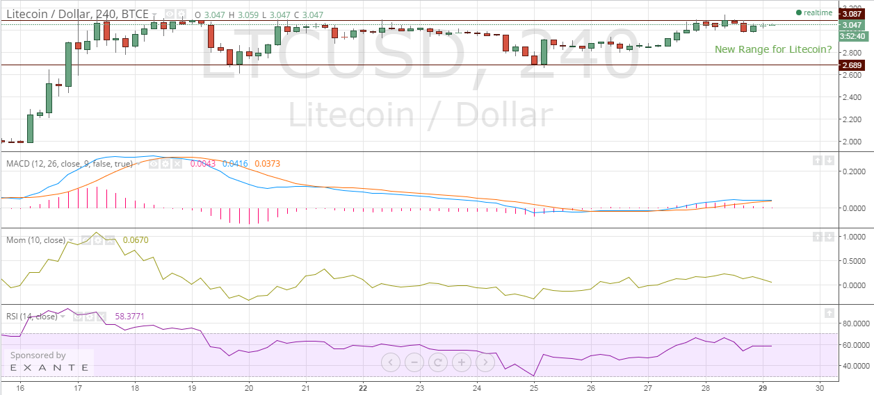 Litecoin Chart Structure – A closer look at the chart above suggests that Litecoin is trading in a wide range of $2.690-3.090. Currently near the resistance, Litecoin may face profit booking and creation of bearish positions.
