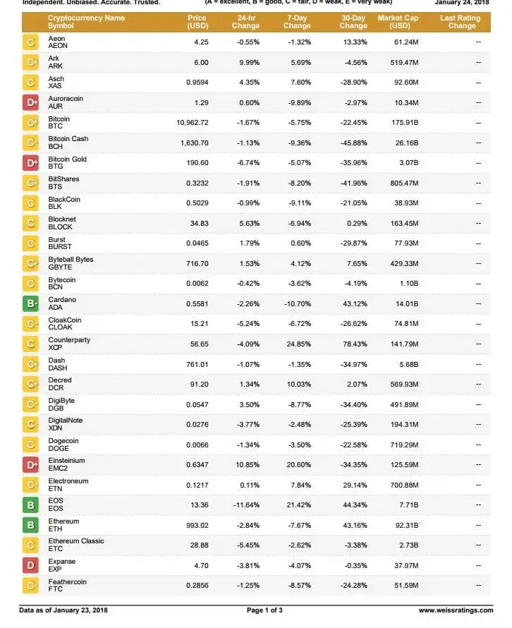 For a full list of all the cryptocurrency ratings issued by Weiss today, you’ll have to visit their website and sign up for their regular newsletter.
