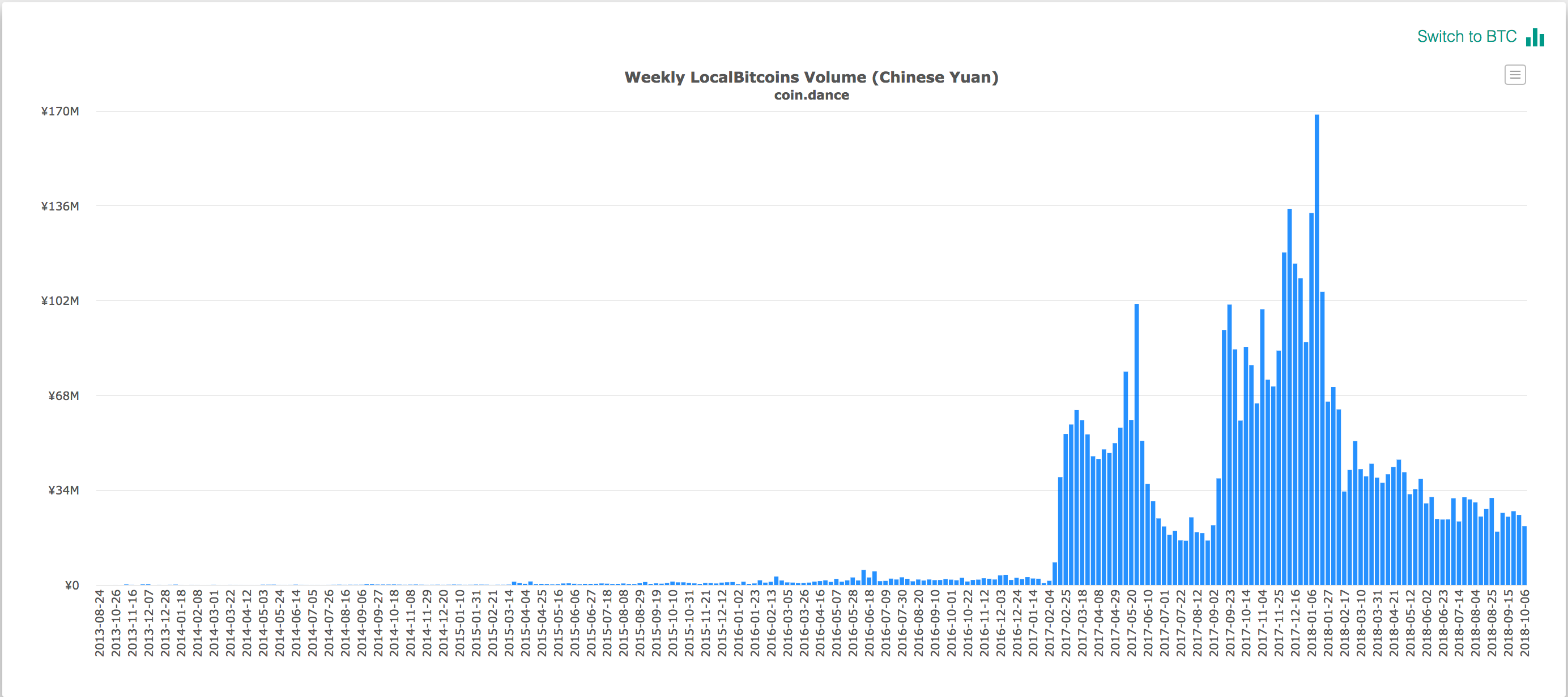 According to the data available on Local Bitcoins, the minimum Yaun-to-Bitcoin ask rate listed is circa $6,643 (46,000 CNY) which is only 20 dollars higher than the global standard, at the time of this writing. Similarly, the minimum bid rate is 30 dollars cheaper than the international Bitcoin rate.