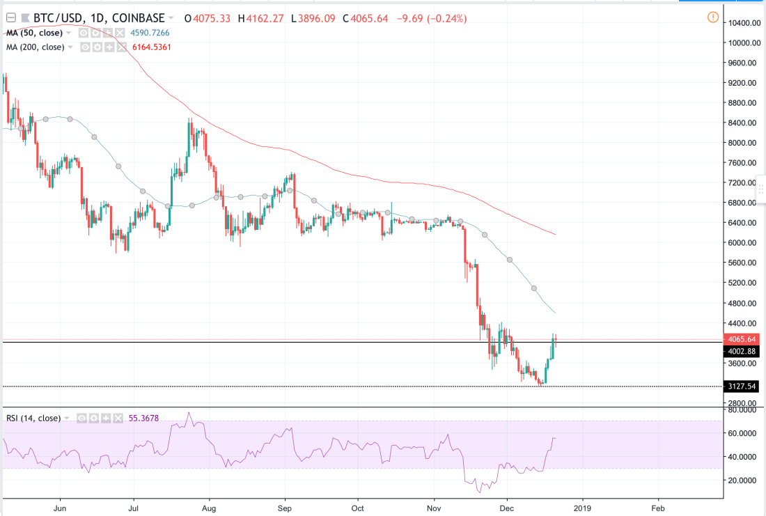 The Bitcoin price appears to have bottomed out near the $3,000-level after falling more than 80% this year. The digital currency at press time is trading above $4,000, up over 30% within just a week. It is clear that traders interested in the long-term aspect of Bitcoin have bought the dip. As a result, in the last five days, Bitcoin is creating new higher highs with volume increasing on each subsequent leg.