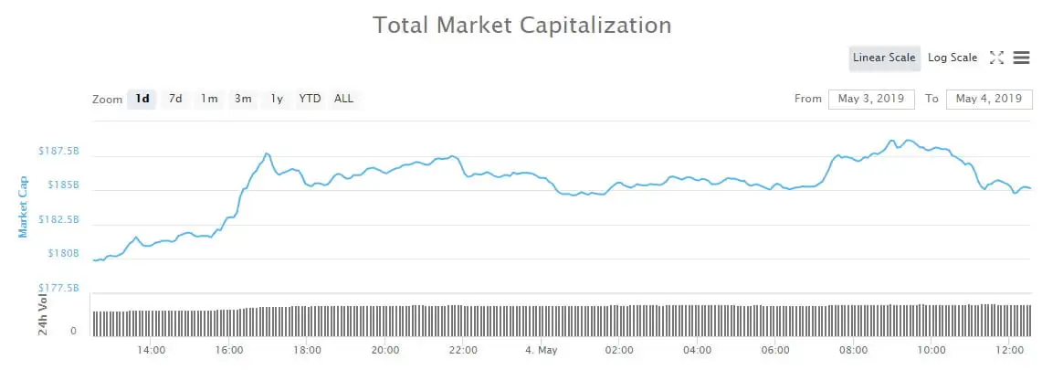 Total market capitalization surged to a new 2019 high of $188 billion a few hours ago. The $8 billion pump from yesterday has pushed markets to a five month high as daily volume surges to $60 billion. Crypto markets have not been at this level since November 2018 when things were heading in the opposite direction. A third of that volume is Bitcoin alone which has also hit a 2019 market dominance high of 55.5%.