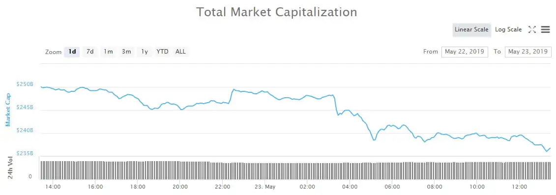 Ethereum has followed suit as usual and with a 7.5 percent dump is now back at $237. ETH has not managed to decouple from Bitcoin and could return to support at the $232 area.
