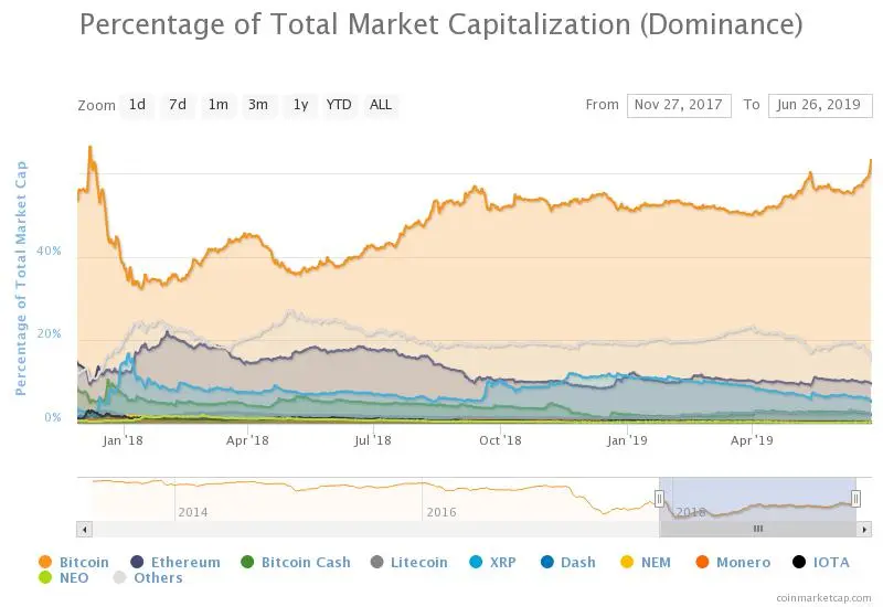 Bitcoin dominance approaches its highest level since Dec 2017. pic.twitter.com/LjhClzQbXz