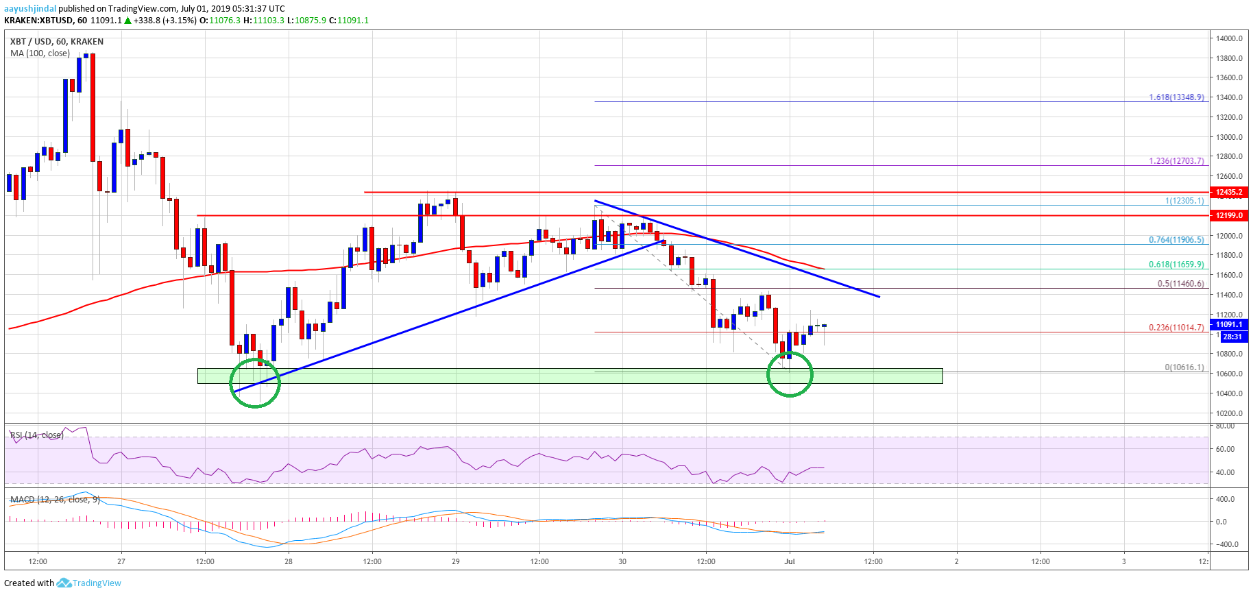 Major Support Levels – $10,600 followed by $10,400.