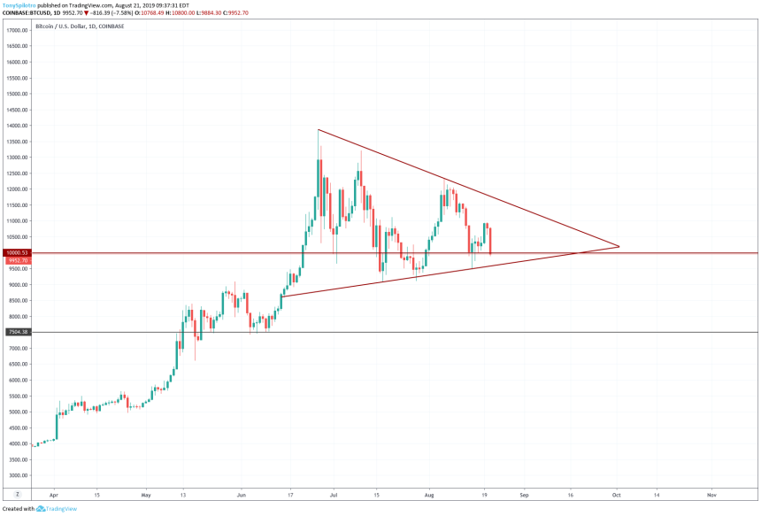 Following a strong rally back toward $11,000 that was stopped roughly $50 short, Bitcoin price has now broken back below $10,000 yet another time during the month of August.