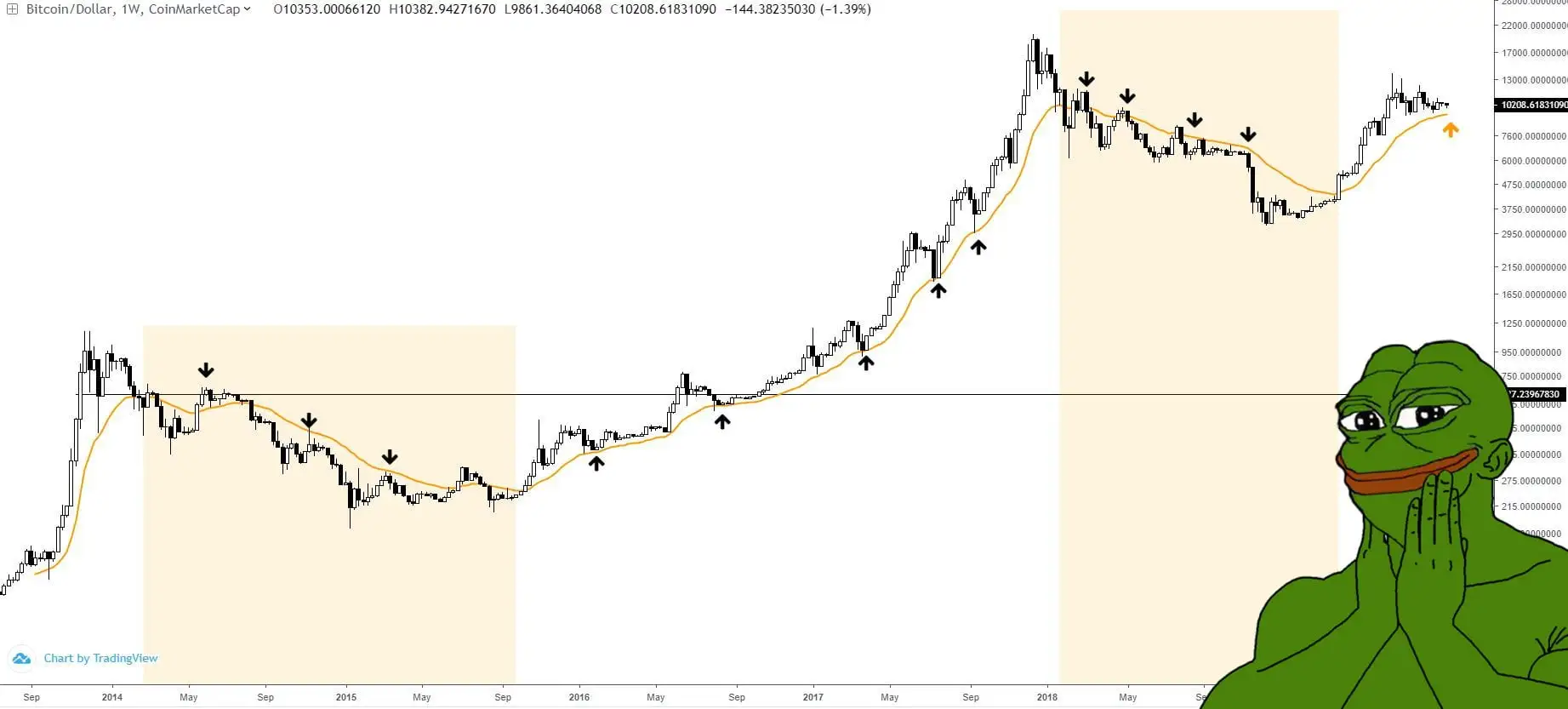 “Add the 21ema and look at longer timeframes (weekly) – as long as price continuously closes above, there is a clear bull bias. The moment we close below, you are technically allowed to freak out – till then, enjoy the ride.”