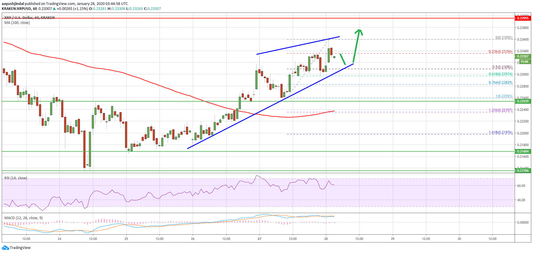 On the upside, the $0.2350 and $0.2360 are initial hurdles for ripple bulls. If there is a clear break above $0.2360, the price is likely to continue higher towards the $0.2450 resistance.