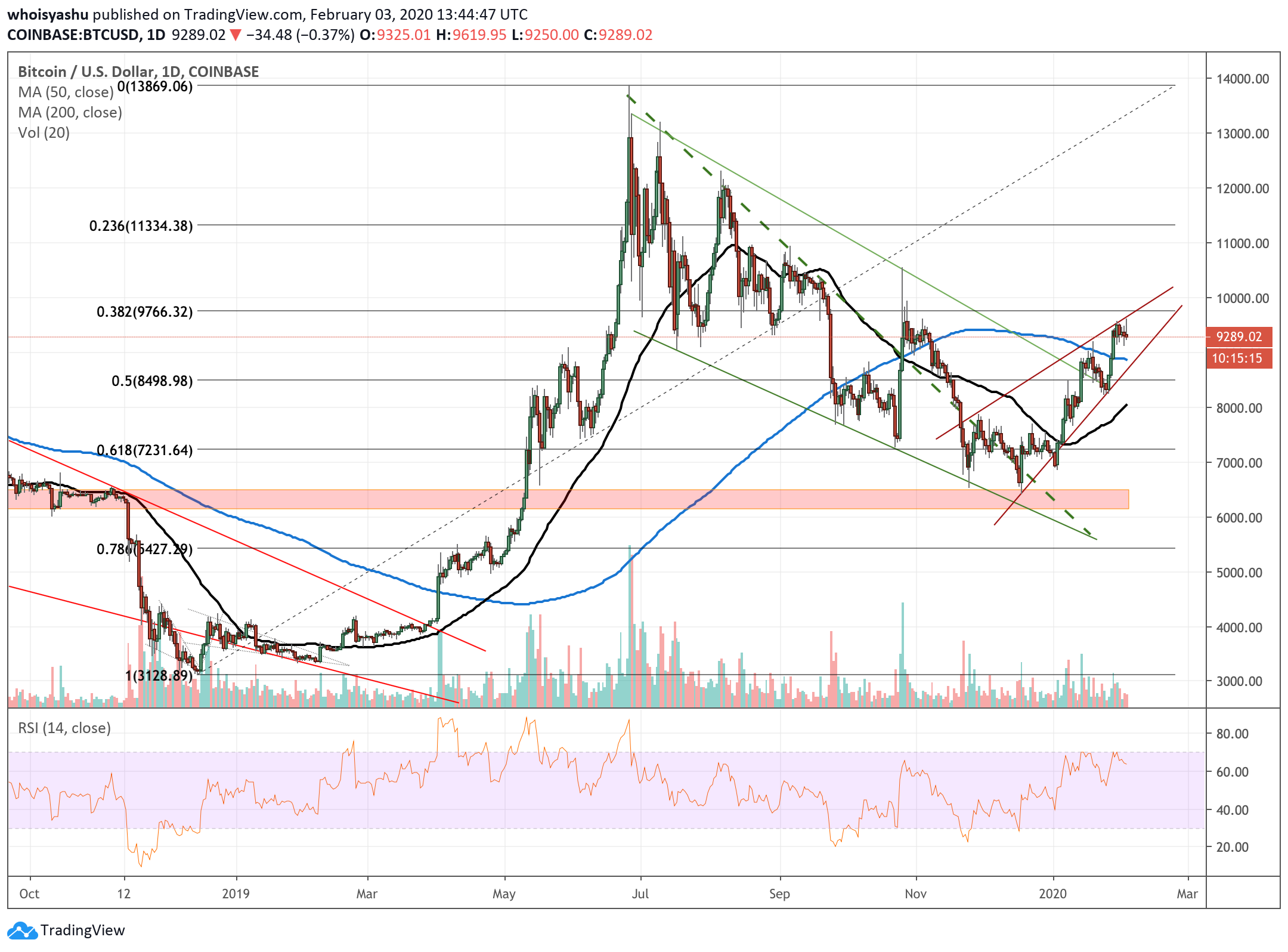 According to technical analyst CryptoHamster, bitcoin may have bottomed out at $6,430 in December 2019, which could have it invalidate the Falling Wedge entirely by continuing its upside momentum. He cited a similar Wedge formation from 2019, the failure of which sent the price up to the year-to-date high of circa $14,000.