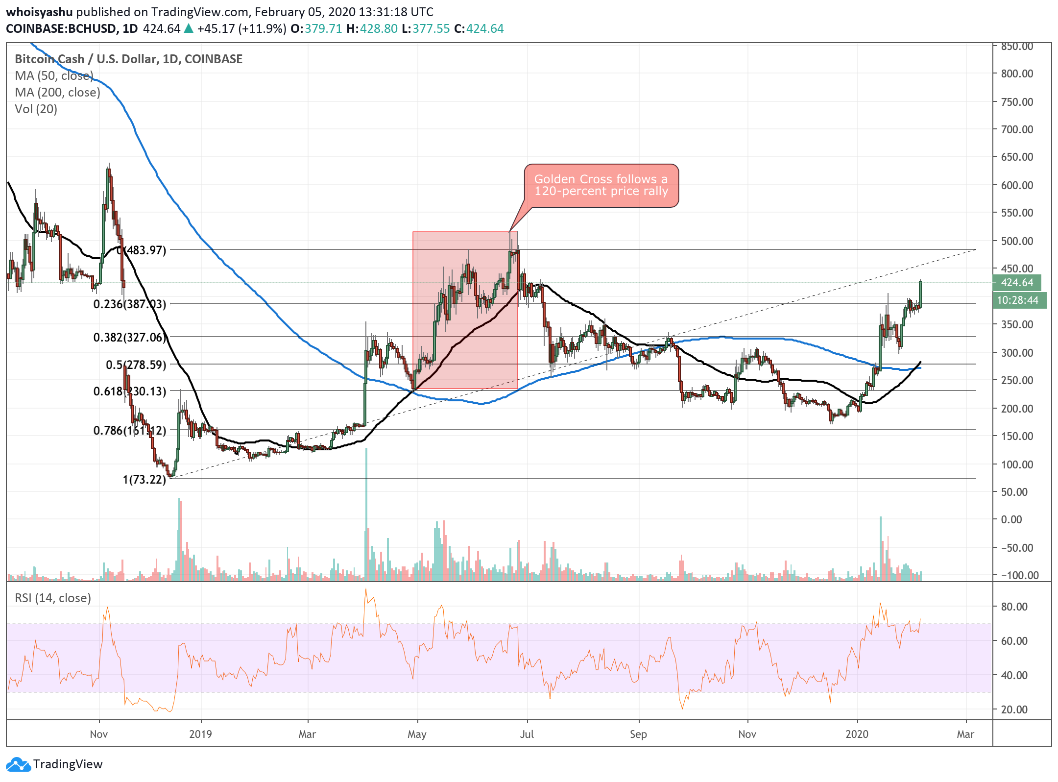 The Bitcoin Cash price jump led to the formation of a Golden Cross on its daily chart.