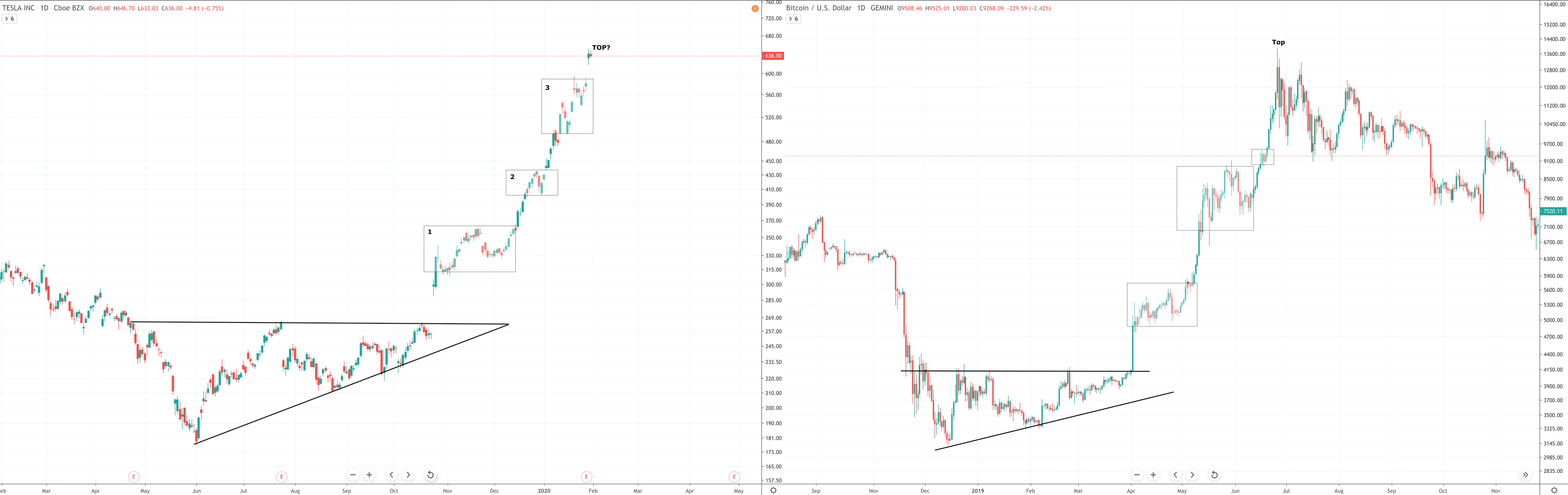 Bitcoin’s amusing correlation with assets that hold no technical resemblance to cryptocurrencies is not a new thing. Earlier this year, the world’s first crypto asset received mentions in global media coverages for registering a price rally in 2017 that was eerly similar to parabolic moves in the Tesla stocks in 2019-2020.
