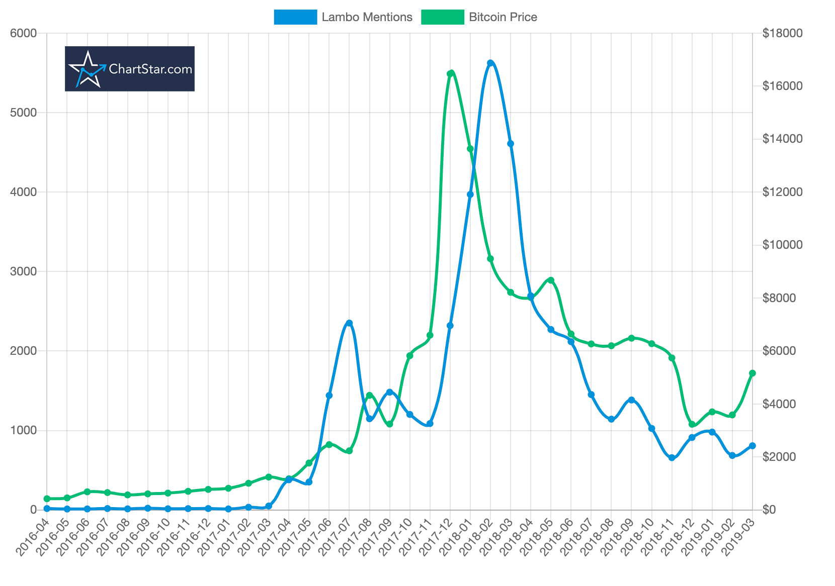 “What I find interesting is whilst Lambo mentions clearly spike after the biggest price increase, there is also a very substantial surge in Lamborghini mentions early on the bullish phase,” said Mr. Gilbert.