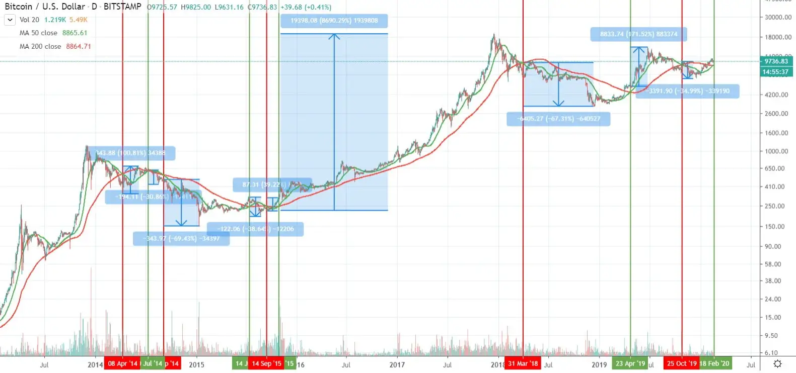 Overall, the Golden Cross remains a conflicted indicator when it comes to predicting bitcoin’s bull runs.