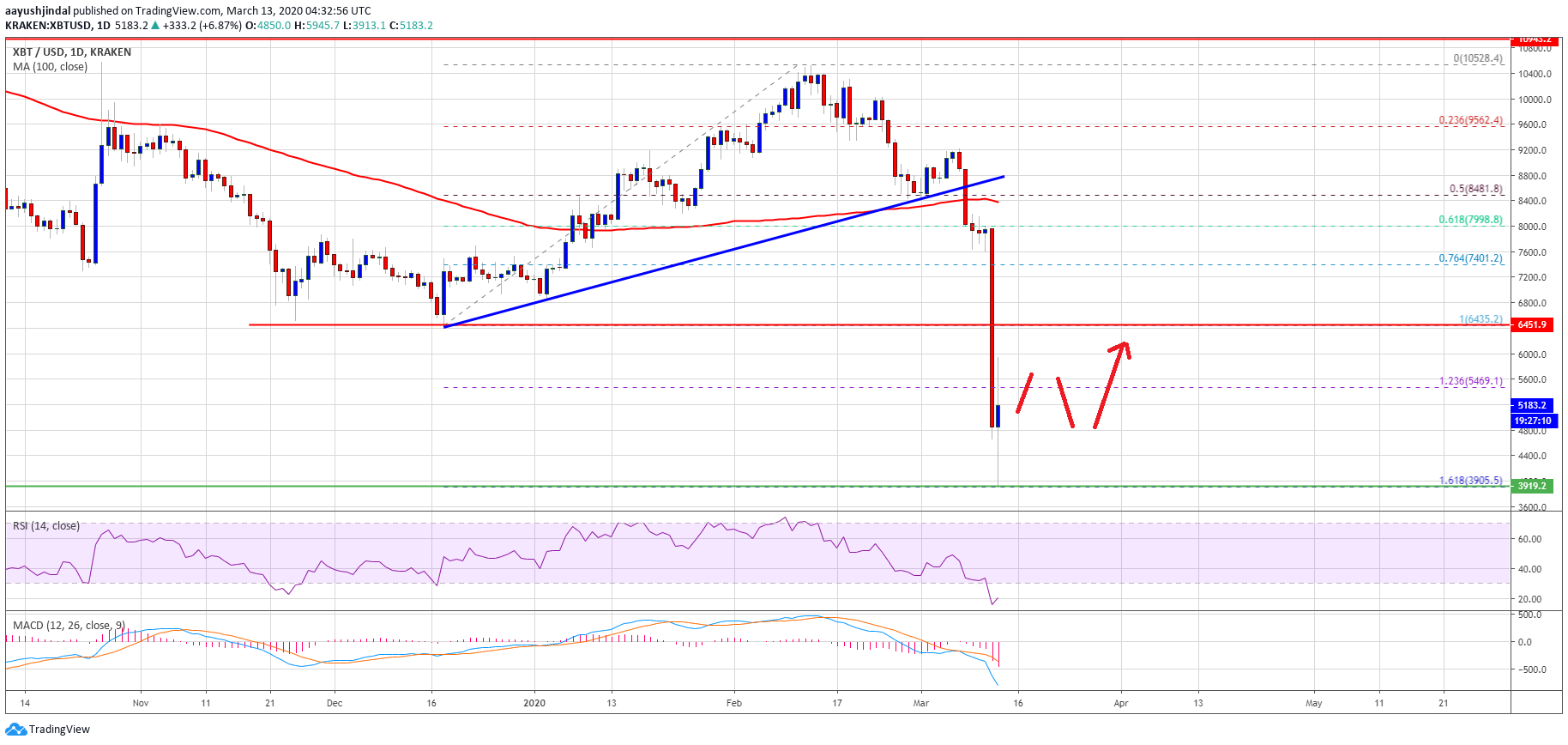 The past few sessions were absolutely catastrophic, as bitcoin fell significantly from well above the $8,000 level. BTC price is down more than 50% and it broke many supports, including $7,200, $6,500 and $5,000.