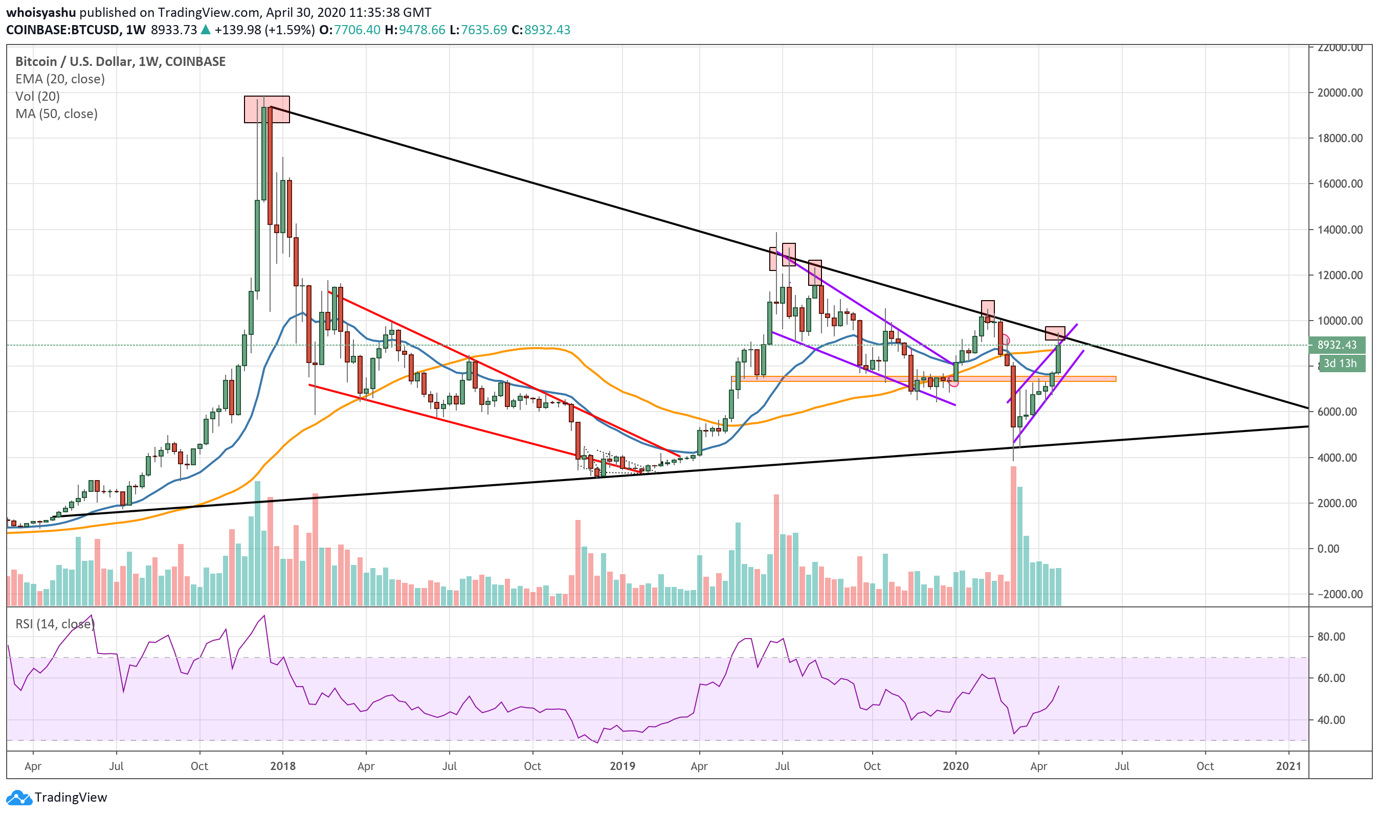 Even today, the bitcoin price reversed wildly after testing the same descending trendline, falling back to as low as $8,541 on Coinbase crypto exchange.