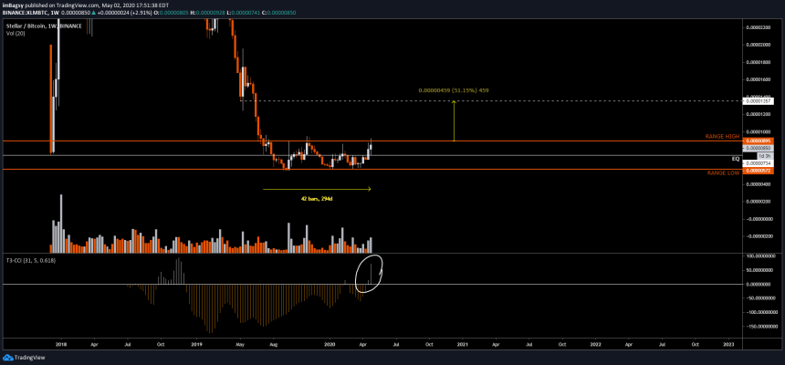 Stellar (XLM) has seen some notable underperformance of Bitcoin and the aggregated crypto market throughout 2019 and even 2020, largely being caught within an extended bout of sideways trading.