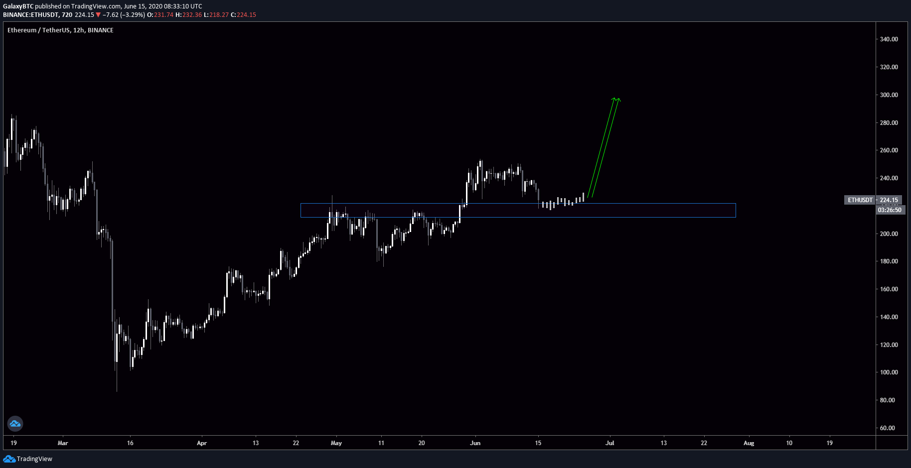 “Buying the dip has been the way to go for the past 3 months. Nothing has changed so far. Getting ETH low $200s and aiming for $300,” he explained.