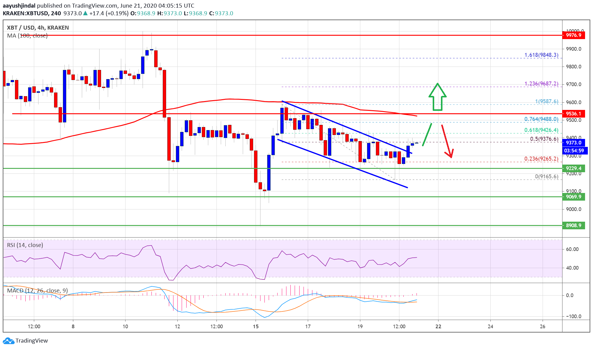 The 100 simple moving average (4-hours) is also waiting near the $9,500 resistance area. Therefore, an upside break above the $9,500 resistance zone is needed for a strong upside continuation. The next major hurdles are seen near the $9,800 and $9,840 levels.