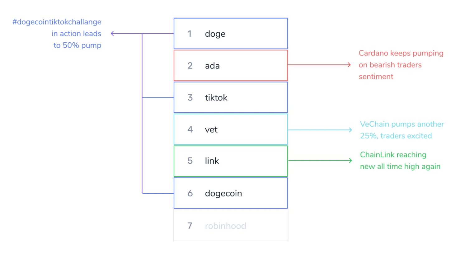 “Within the next 12 days after a coin claims a top 3 position on our list of Emerging Trends, its price drops by an average of 8.2 percent. Based on our study, once the increased crowd attention subsides (which usually happens in a matter of hours/days), a short-term price correction – or consolidation – is often a likely outcome,” said Santiment.