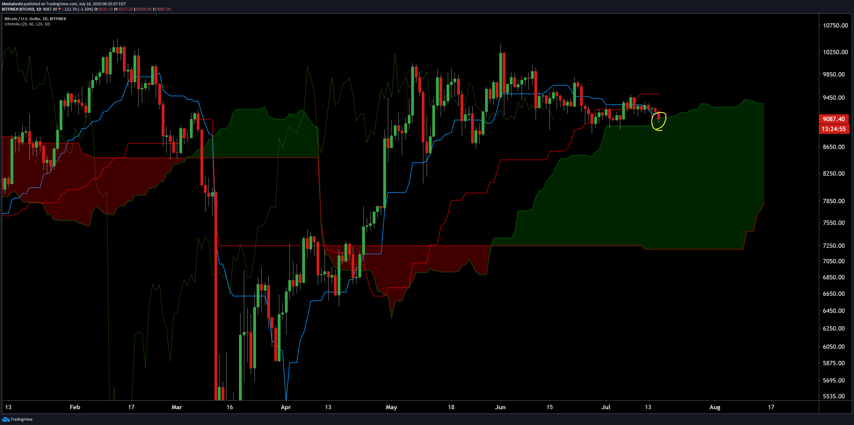 Josh Olszewicz – a popular cryptocurrency analyst on Twitter – explained that BTC has now entered its Ichimoku Cloud – opening the gates for a decline towards $7,000.