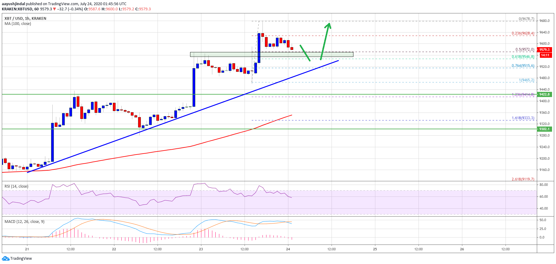 After a successful break above $9,500, bitcoin extended its rally above the $9,600 level against the US Dollar. BTC even broke the $9,650 level and settled well above the 100 hourly simple moving average.