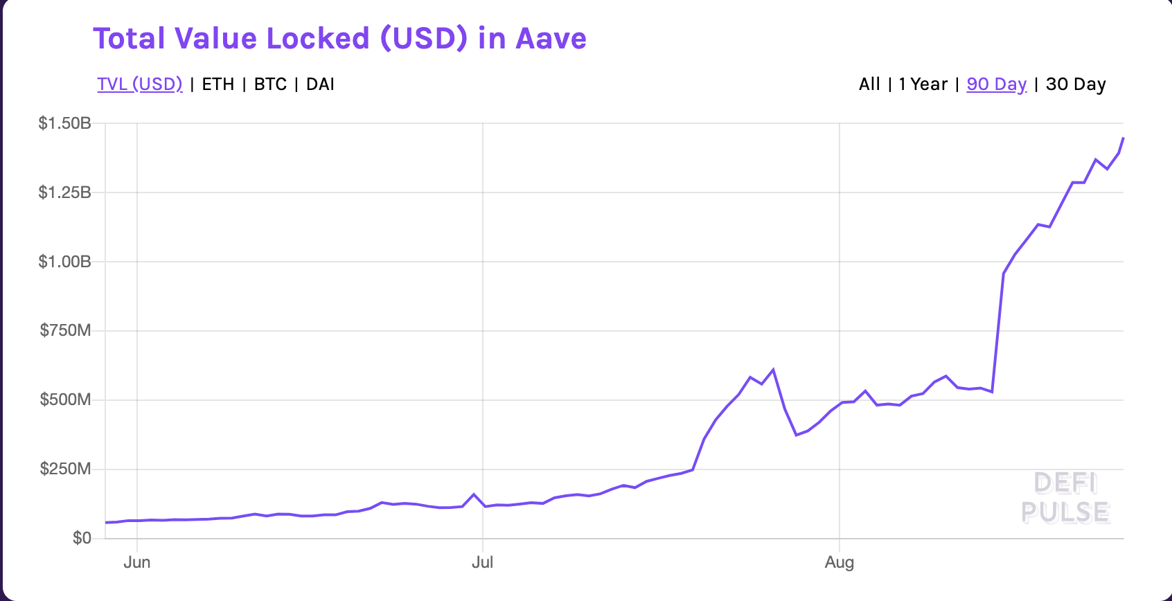Total value locked inside Aave smart contracts. Source: DeFi Pulse
