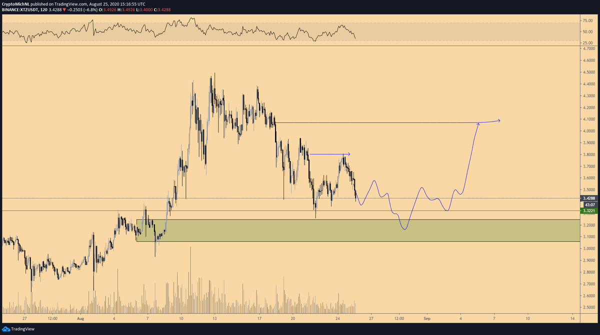 Another analyst explained in a recent tweet that Tezos is flirting with a break below the lower boundary of a crucial ascending channel that has been guiding its multi-month uptrend. This boundary exists around $3.40.