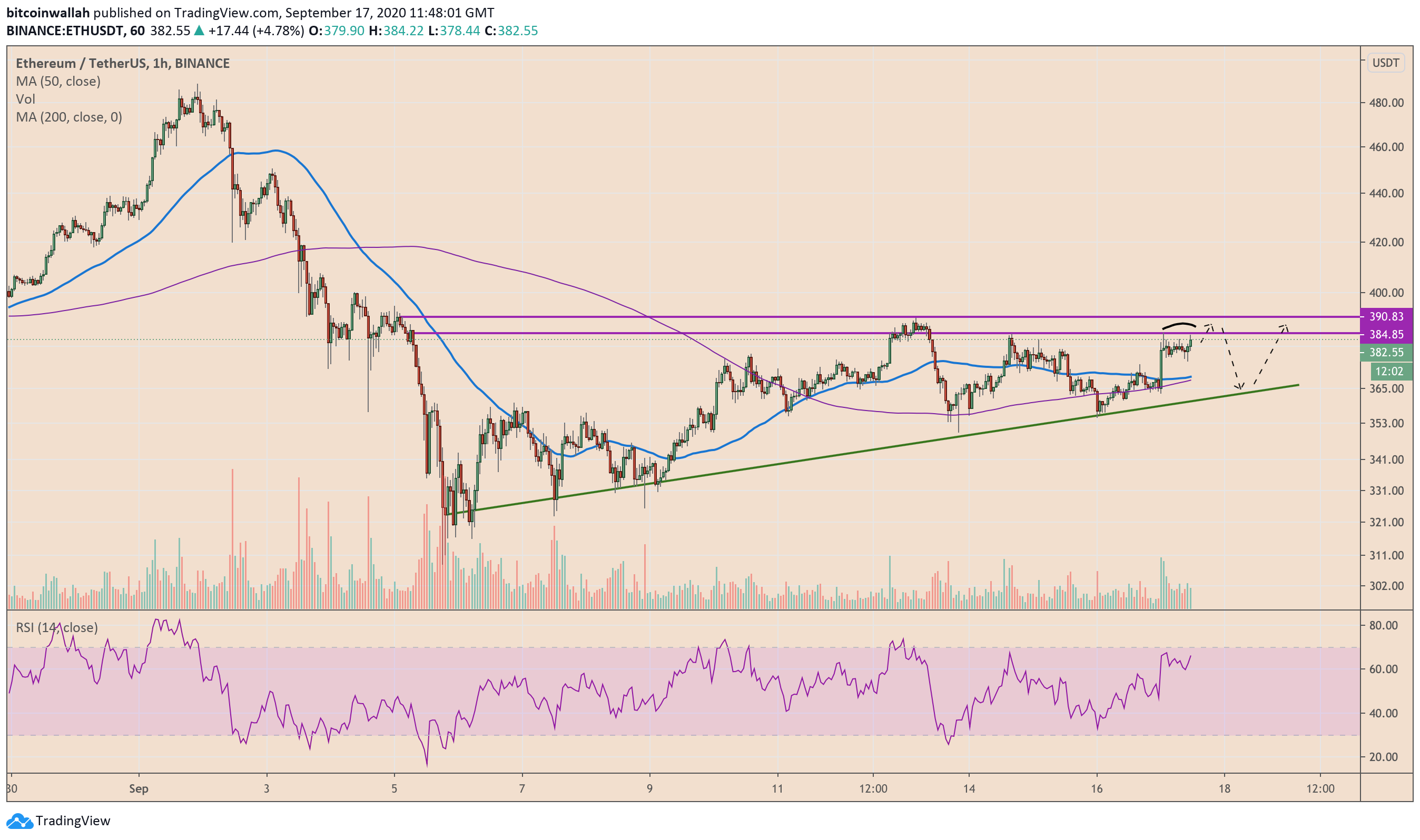 ETHUSD trades near the interim resistance area of $384-390. Source: TradingView.com