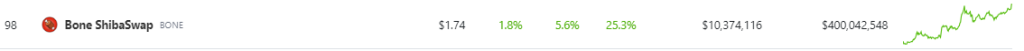 While the price of Bitcoin and Ethereum has stabilized, the BONE cryptocurrency has increased by more than 130% since its June lows.