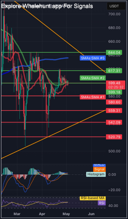 BNBUSD trading at $593 on the 24-hour chart: TradingView.com
