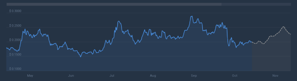 Yet the token traded near $0.21 at the time of the report, down about 0.18% in the day and down 12% so far this month.