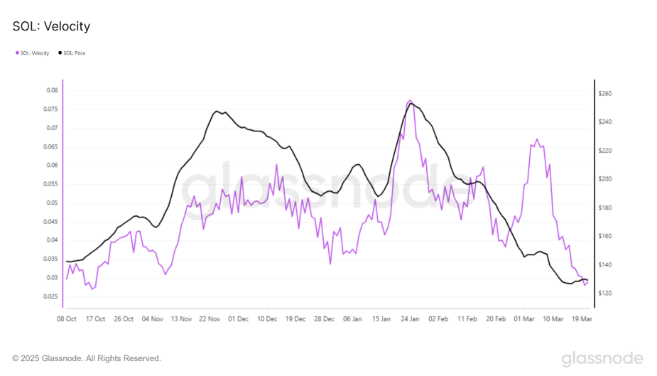 Further complicating the outlook is Solana’s steadily declining velocity, which has now sunk to its lowest point in five months. This metric, which tracks how often SOL changes hands, has reverted to levels last seen in October 2024.