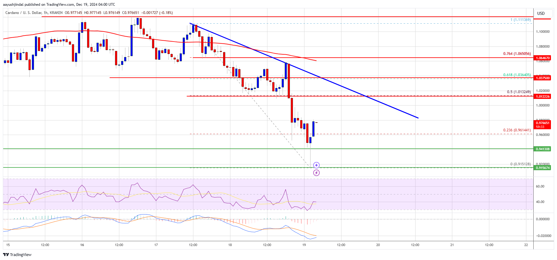 If Cardano’s price fails to climb above the $1.020 resistance level, it could start another decline. Immediate support on the downside is near the $0.9450 level.