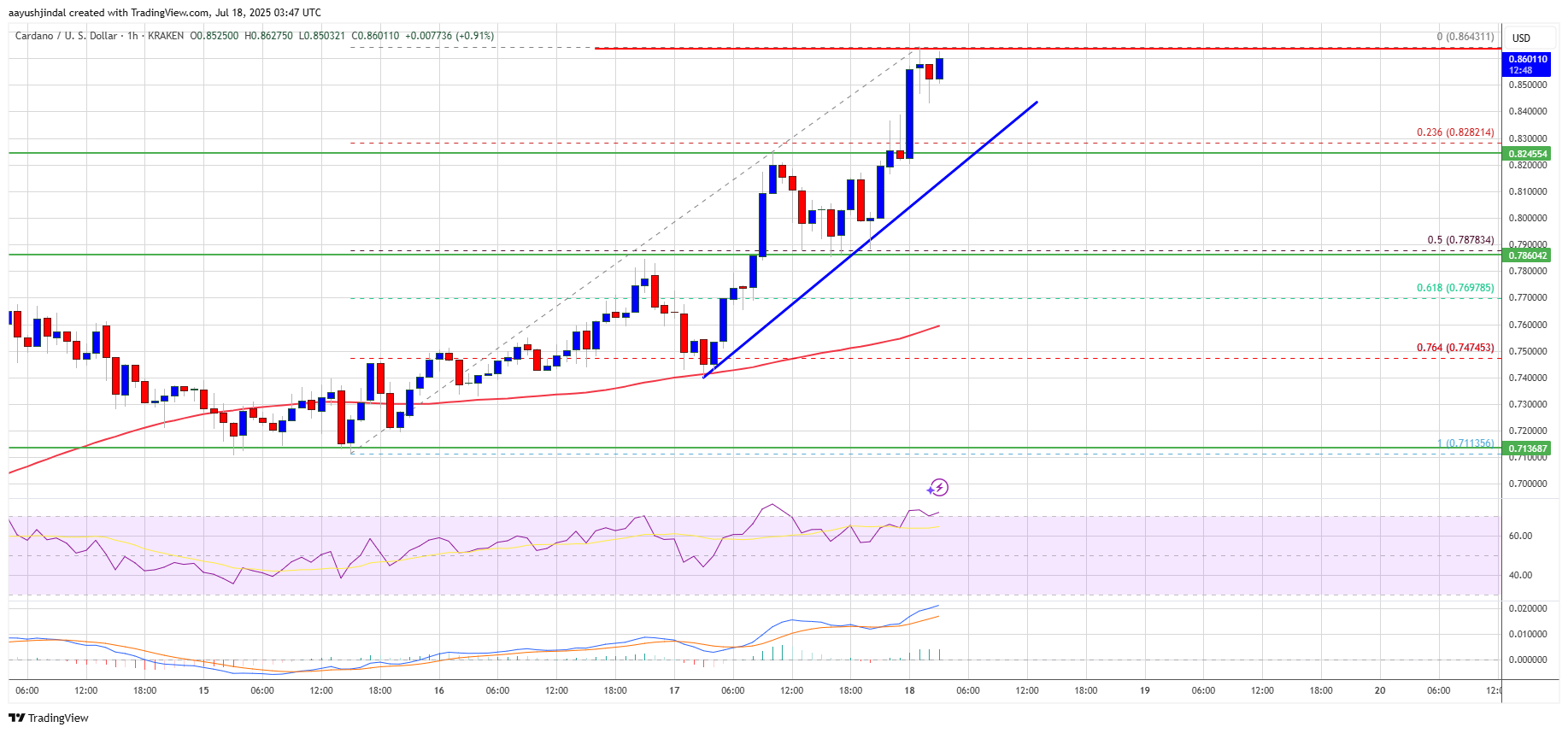 Hourly RSI (Relative Strength Index) – The RSI for ADA/USD is now above the 50 level.