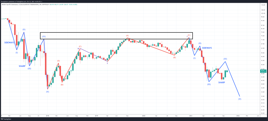 BTC dominance suggests another wave down. | Source: CRYPTOCAP-BTC.D on TradingView.com