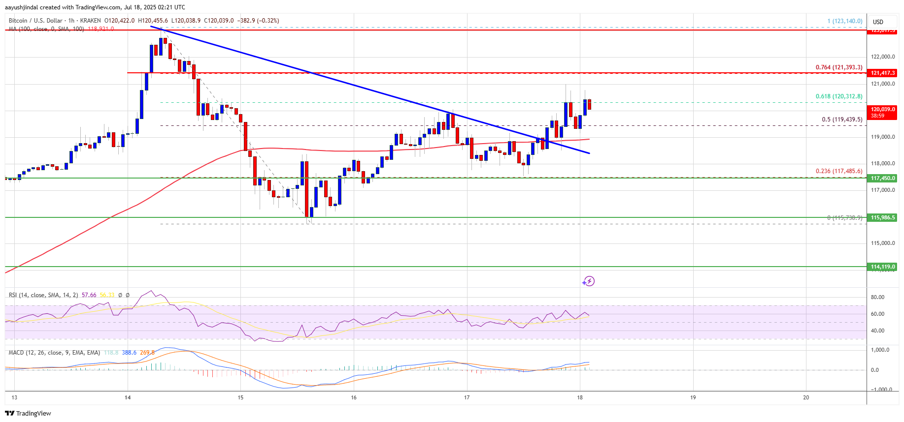 Besides, there was a break above a bearish trend line with resistance at $119,000 on the hourly chart of the BTC/USD pair. Bitcoin is now trading above $119,500 and the 100 hourly Simple moving average.
