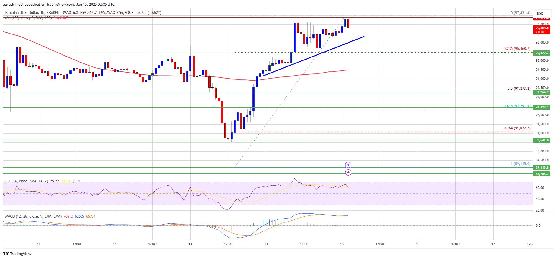 There is also a connecting bullish trend line forming with support at $96,000 on the hourly chart of the BTC/USD pair. Bitcoin price is now trading above $95,000 and the 100 hourly Simple moving average.