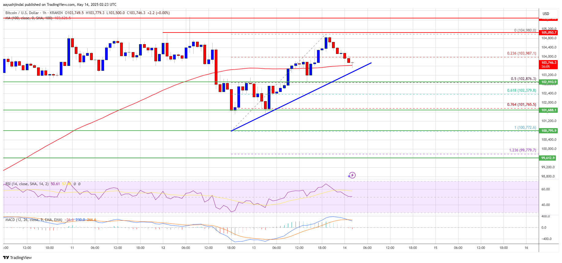 Bitcoin price started a fresh increase and tested the $105,000 zone. BTC is now consolidating gains while Ethereum rallied toward the $2,750 resistance.
