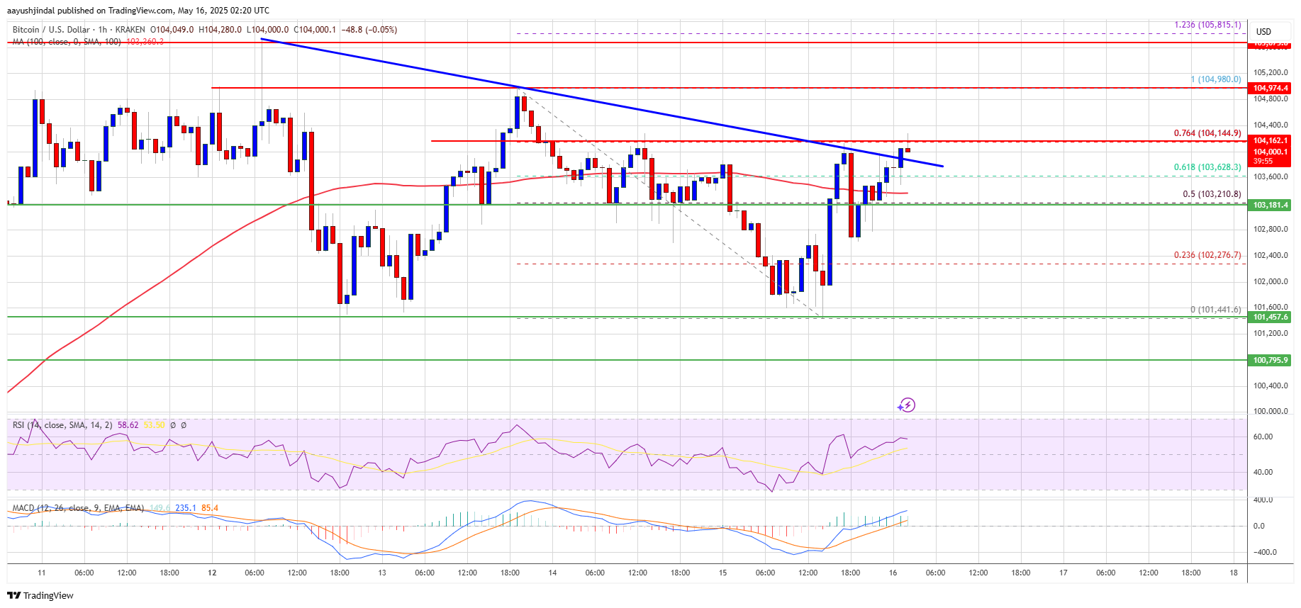 Bitcoin price started a fresh increase and cleared the $103,500 zone. BTC is now consolidating and might aim to clear the $105,000 zone.