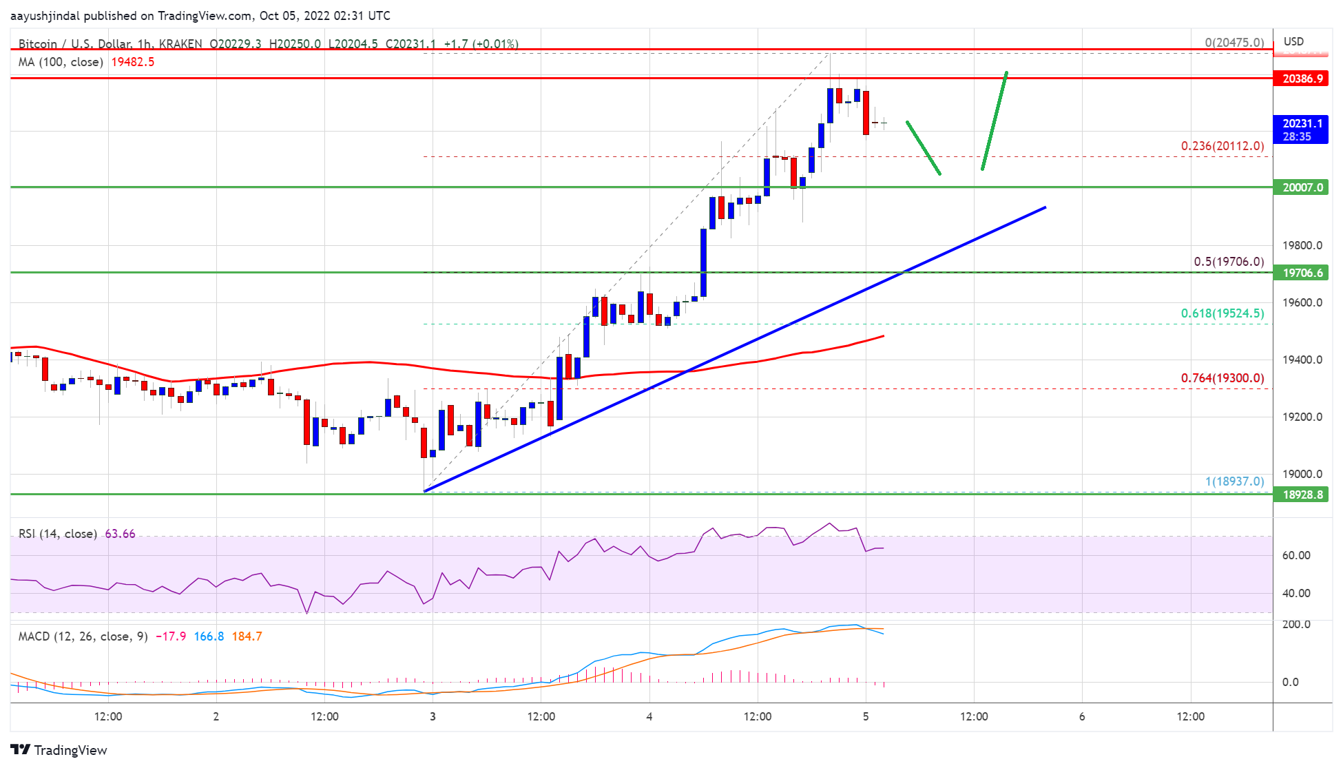 Bitcoin price gained pace for a move above $20,000 against the US Dollar. BTC is showing positive signs and might rise further above $20,500.